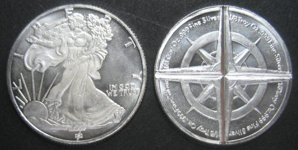Based on the old Alaska Prospector idea and the pieces of eight idea, these are divisible into quarter ounce two bit pieces for when things really get rough.